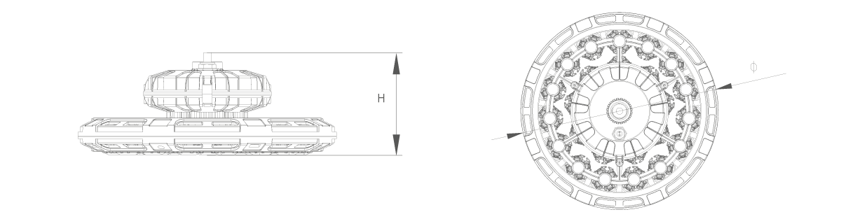 | C2300-BE-180W/200W | 176 ~ 264 VAC 50/60Hz | ≥ 80 | 30º/60º/90º/120º | PC + 陶瓷像素 | 掛鉤 / 吊桿 / 吊鏈 | 常亮/DALI/0-10V | Φ341*H134mm | 約3.44KG |