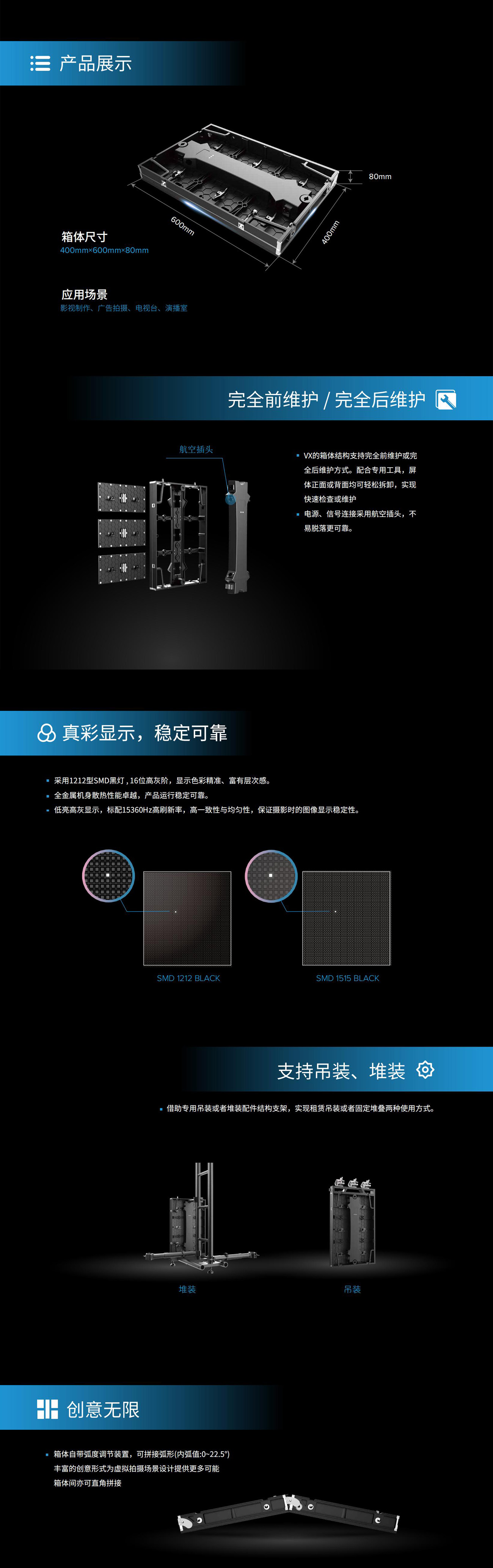 為XR虛擬拍攝應用需求而生的VX系列擁有高一致性與均勻性、高幀率的畫面表現能力,色彩精準而又富有層次感。超高亮度的LED顯示屏實現了夜晚低亮高灰與高亮全白天場景的快速切換,使拍攝內容銜接自然,提升了虛擬拍攝的效率。